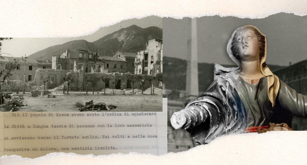Un’antica Pietà lignea sarà l’emblema dei segni che la guerra ha lasciato sul patrimonio culturale cittadino, come i bombardamenti dell’ultimo conflitto mondiale che hanno cambiato per sempre il volto della città. Testimonianze fotografiche, memorie diaristiche forniranno uno specchio dei luoghi, della vita quotidiana e delle persone legate agli avvenimenti bellici.